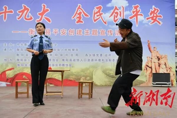 衡阳县“践行十九大、全民创平安”送法下乡演出活动从4月初开始,今天到界牌镇是第七场演出。活动将于4月份和9月份,在全县25个乡镇分别举行多场专题演出。用群众喜闻乐见的艺术形式,把十九大精神传播到千家万户;用群众身边的故事,教育引导大家自觉抵制黄赌毒等丑恶现象和邪教组织,给当地群众呈上一场有政法特色又极富艺术感染力的视听盛宴。